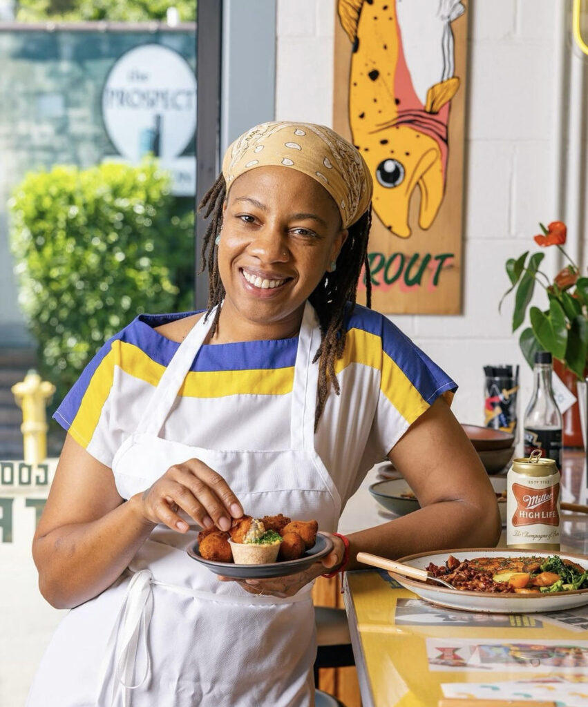 Ashleigh Shanti’s culinary star has risen steadily since she was named a semi-finalist for the 2020 James Beard Award for “Rising Star Chef of the Year.” The Top Chef: Houston alum has continued to gain recognition, not only for her television appearances but also for her groundbreaking work with her restaurant, Good Hot Fish, in Asheville, North Carolina. Shanti’s modern-day fish camp pays tribute to Southern foodways, particularly the culinary traditions of Black Southerners, and has earned national recognition, with The New York Times naming Good Hot Fish one of the 50 Best Restaurants in America in 2024.