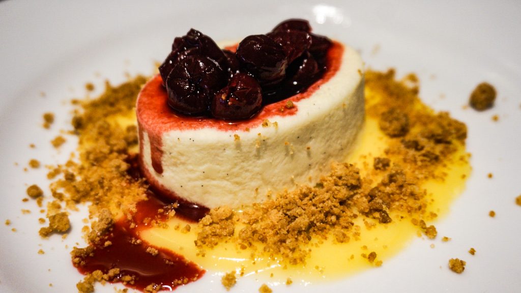 Last, we shared dessert. We decided on vanilla Bavarian. This small and delicious treat consisted of Key lime curd, morello cherries, and shortbread crumbles. My advice is, get two. It’s too good to share.
