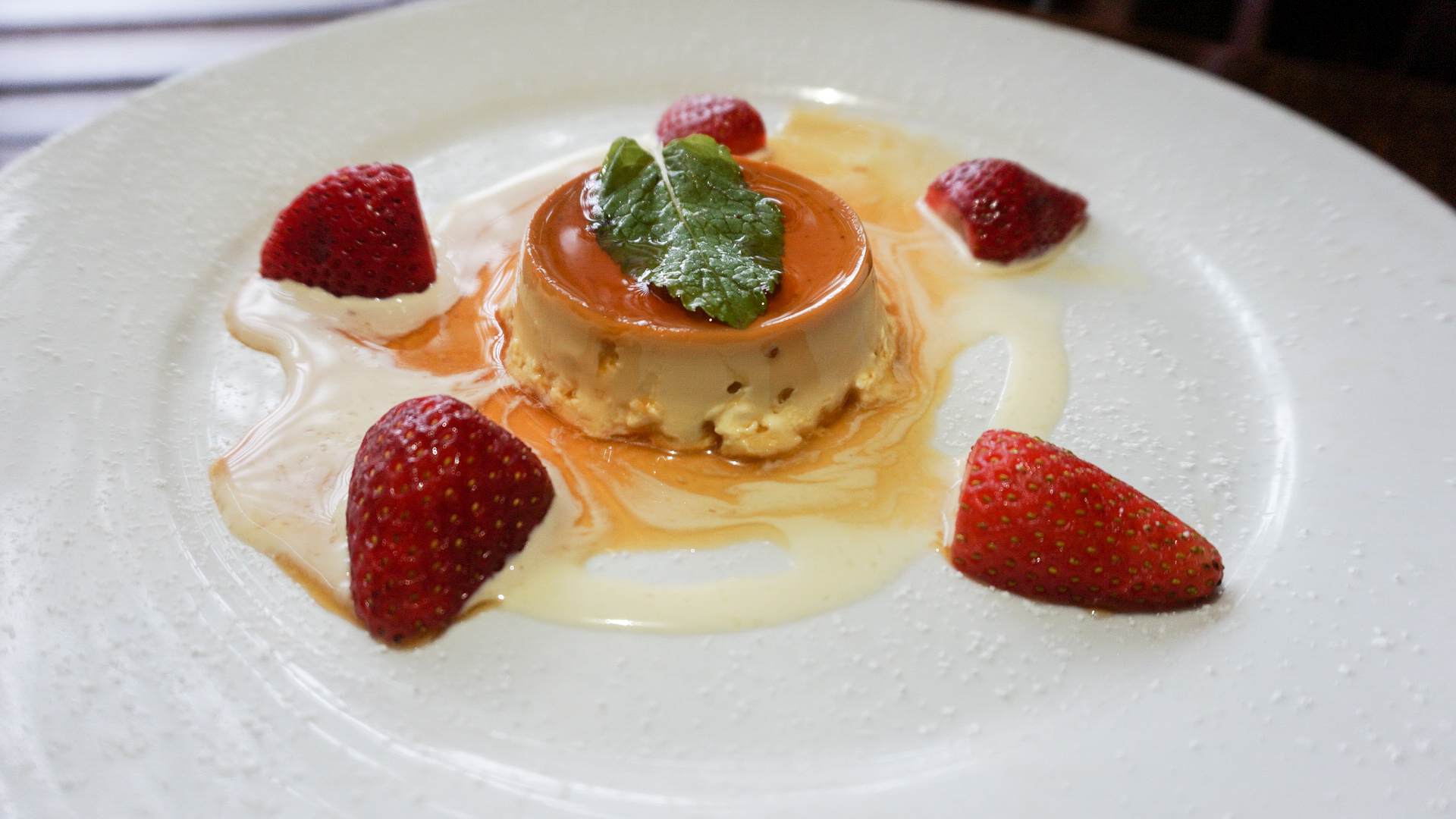 Last was dessert. We tried the traditional creme caramel flan with sliced strawberries. Must have!!