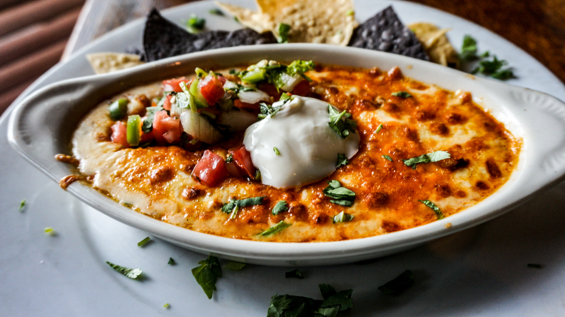 For appetizers, we wanted to be a bit adventurous and selected the Queso Fundito. This awesome starter consists of Cheddar & mozzarella cheese baked over a house made New Mexico chorizo red chili topped with pico de gallo, sour cream, & cilantro. One word to describe it- Amazing! This is the perfect snack. I would eat this every day if I could..