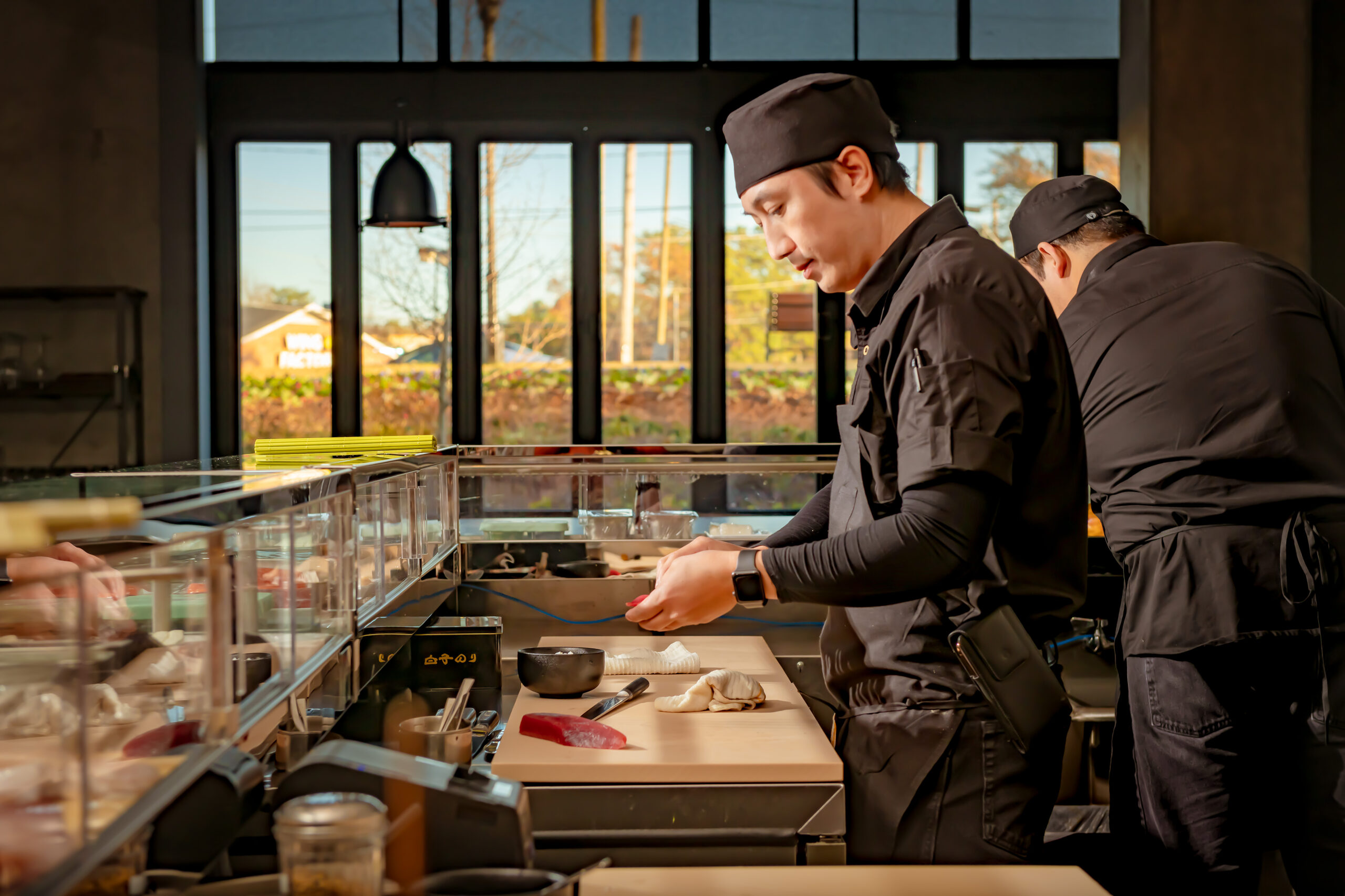 John and Grace Lee, creators of Ichiban Steak and Sushi in Alpharetta and Cumming, are putting their decades of experience in restaurant development to the service of their new establishment, Fúdo. As restaurant craftsmen, they have fashioned a seductive interior to brilliantly showcase the edible stars of the show. Artfully contrasting stark metal elements with the warmth of wooden tables, the restaurant will seduce customers with its back-lit bar, ample seating, its dog-friendly patio and its expansive interactive sushi bar. As if that were not enough, Fúdo’s original cuisine will conquer every diner’s heart.