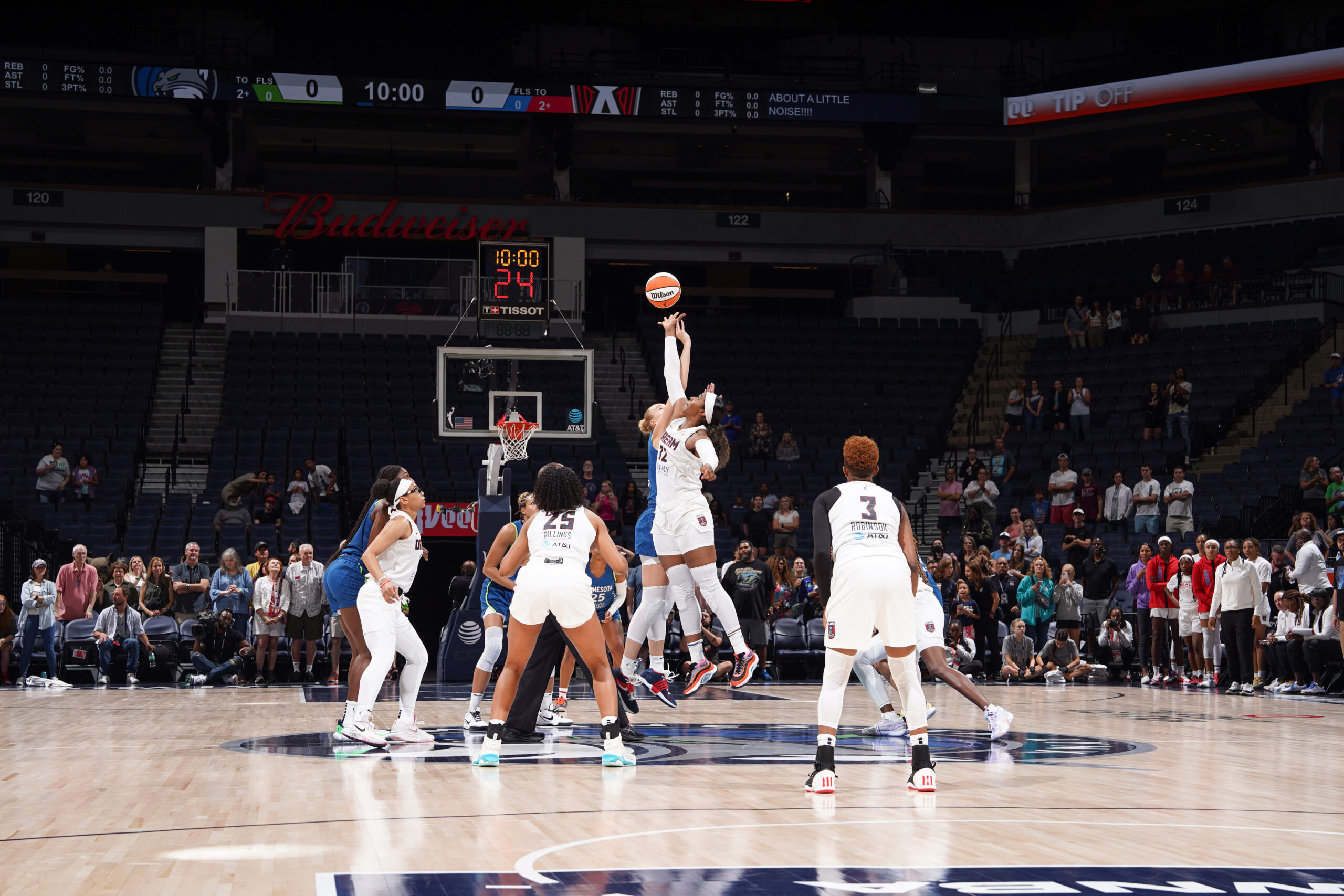 MINNEAPOLIS, MN – SEPTEMBER 1: A look at the Minnesota Lynx & Atlanta Dream during the opening tip-off on September 1, 2023 at Target Center in Minneapolis, Minnesota. NOTE TO USER: User expressly acknowledges and agrees that, by downloading and or using this Photograph, user is consenting to the terms and conditions of the Getty Images License Agreement. Mandatory Copyright Notice: Copyright 2023 NBAE (Photo by Jordan Johnson/NBAE via Getty Images)