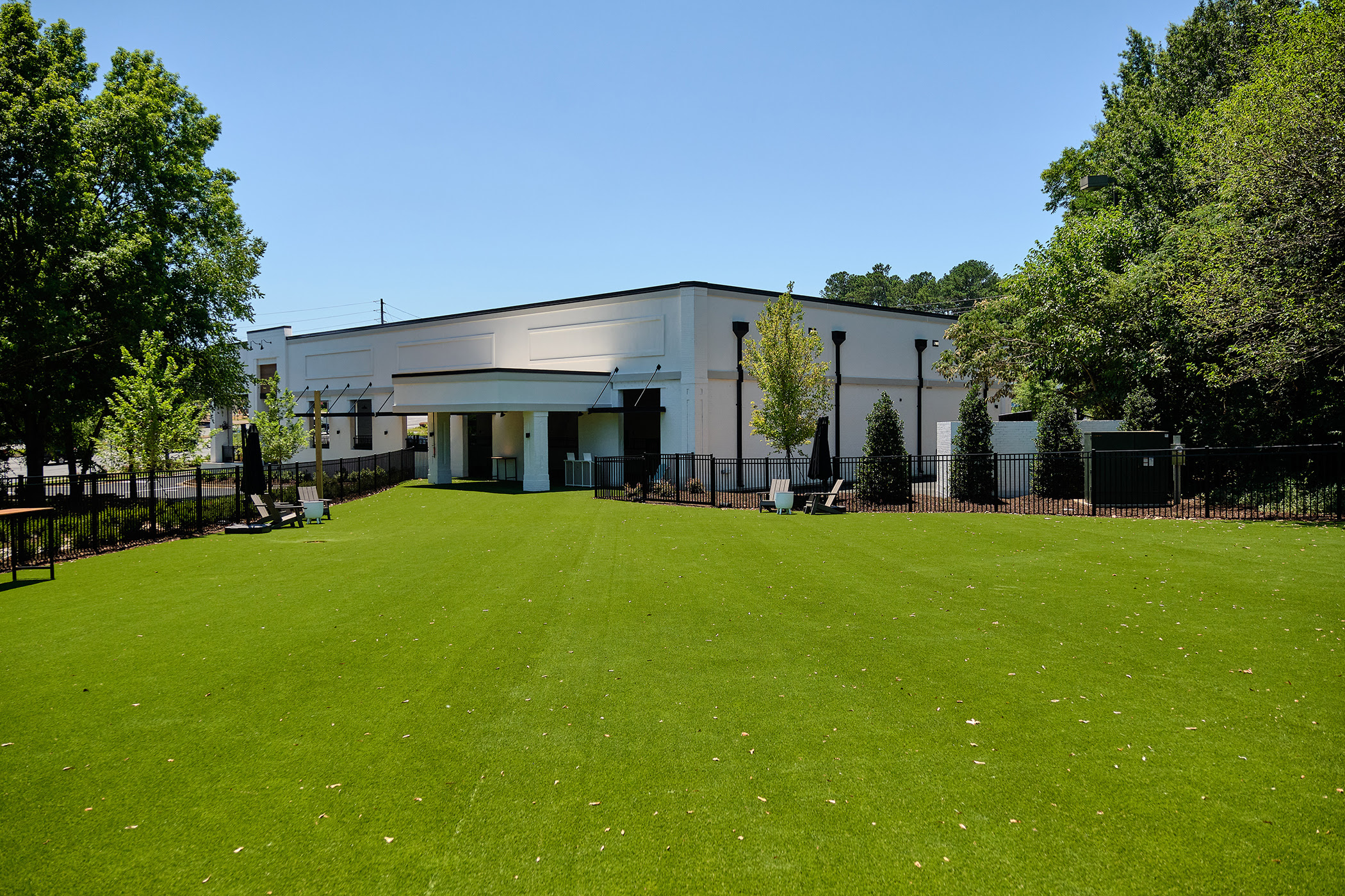 Professionally trained “dogtenders” ensure a safe and happy environment in both the indoor and outdoor dog parks, allowing dogs to run, pounce, and sniff to their heart’s content. The large outdoor dog park provides space for dogs to play in the sunshine while their humans relax in Adirondack chairs. On rainy days, the indoor dog park offers a clean and fun atmosphere for continued play.